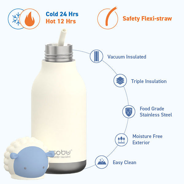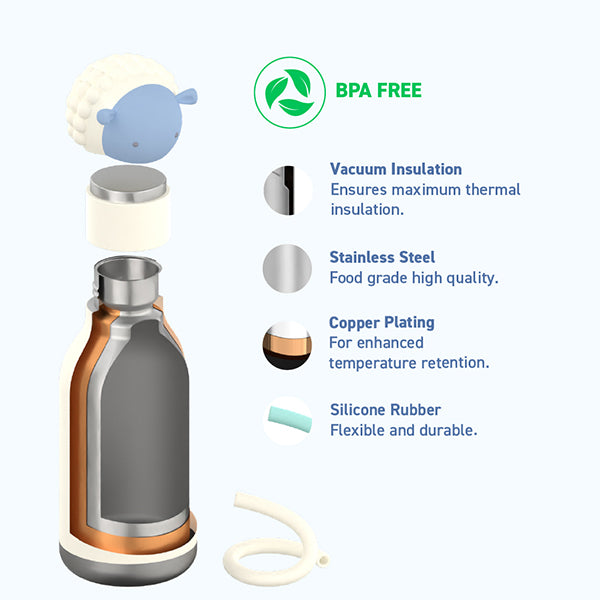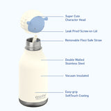 בקבוק תרמי נירוסטה בצורת חיות 460 מ"ל עם קש - חיות