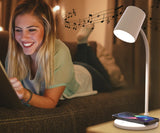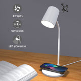 מנורת שולחן עם מטען אלחוטי ורמקול