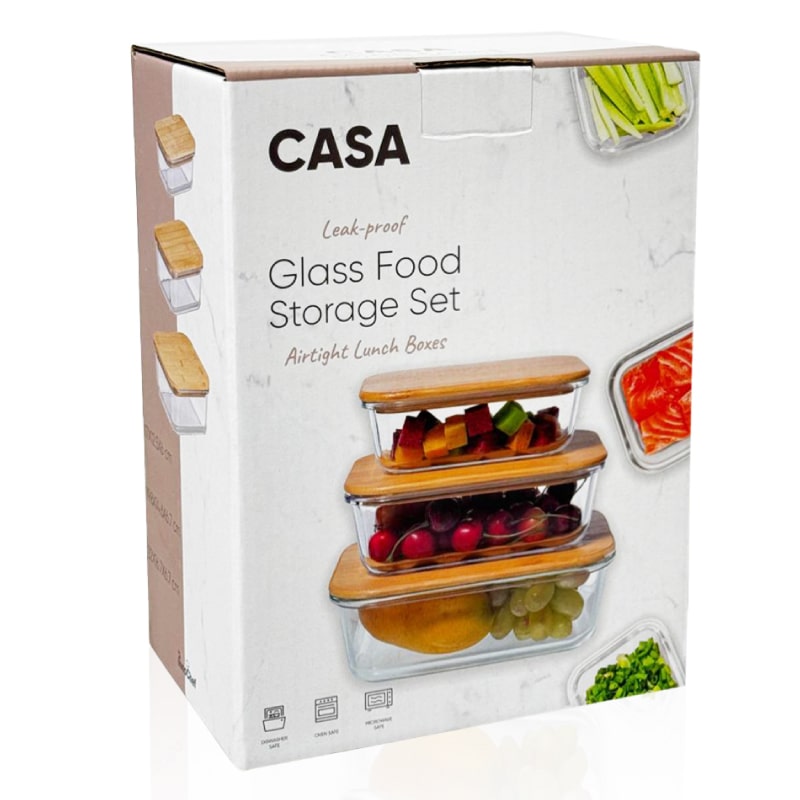 סט 3 קופסאות אחסון מזכוכית שקופה ואיכותית